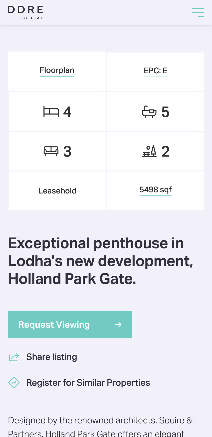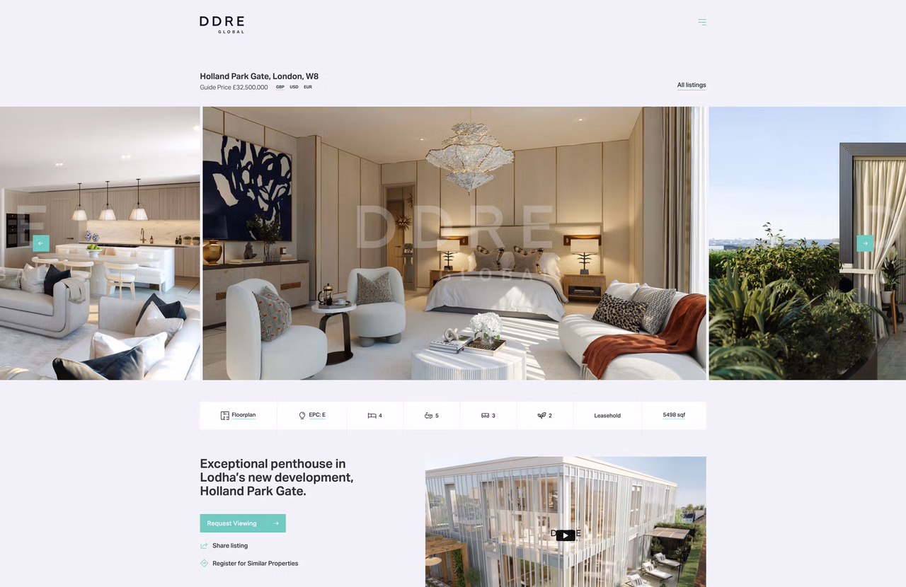 We developed the website with a headless architecture. This provides benefits such as rapid speeds that enhance search engine optimisation, as well as providing a secure platform with scalability and flexiblity. That was important due to the impending DDRE 'Buying London' Netlflix series that was due to be released shortly after launch.