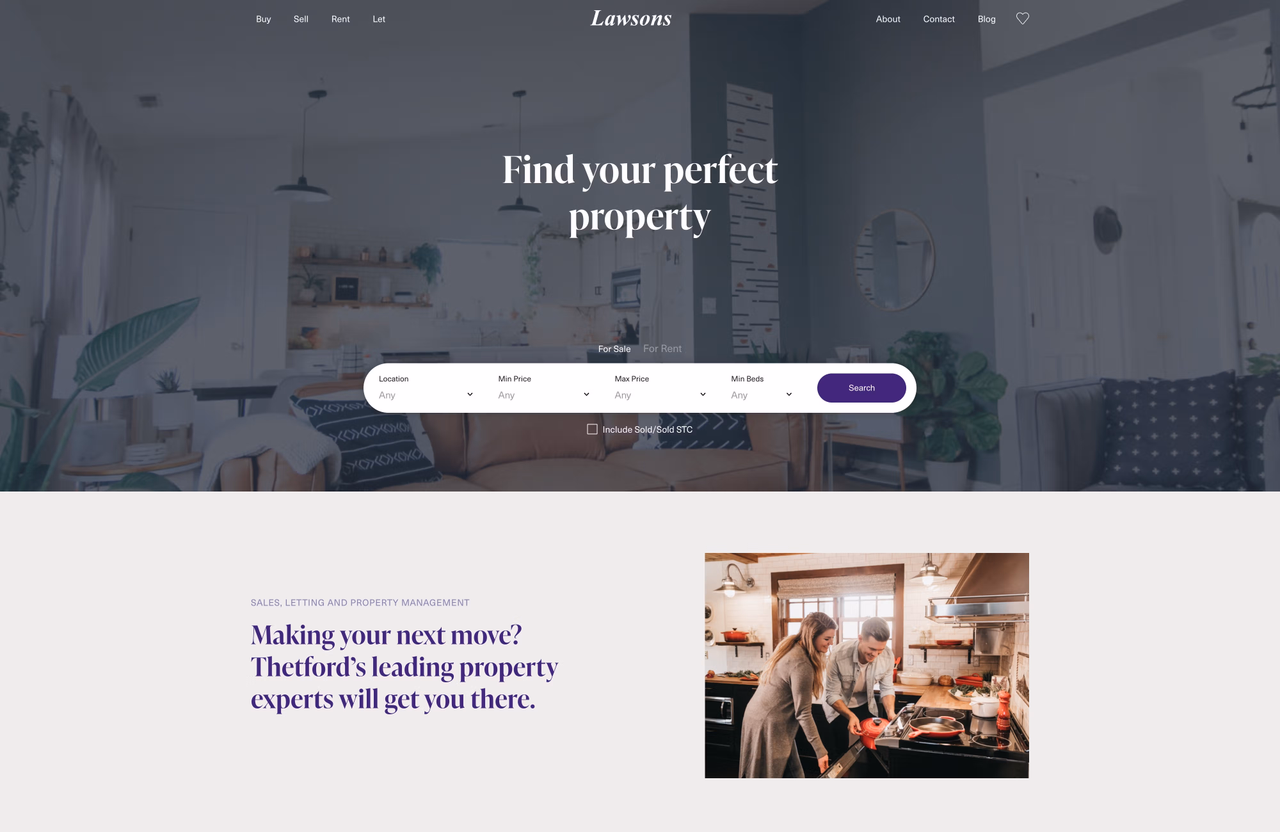 We developed the website upon WordPress, providing the marketing team at Lawsons with numerous purpose built components which they can choose from when adding new content. We also integrated their estate agency CRM so all property data is automatically pulled into the website.