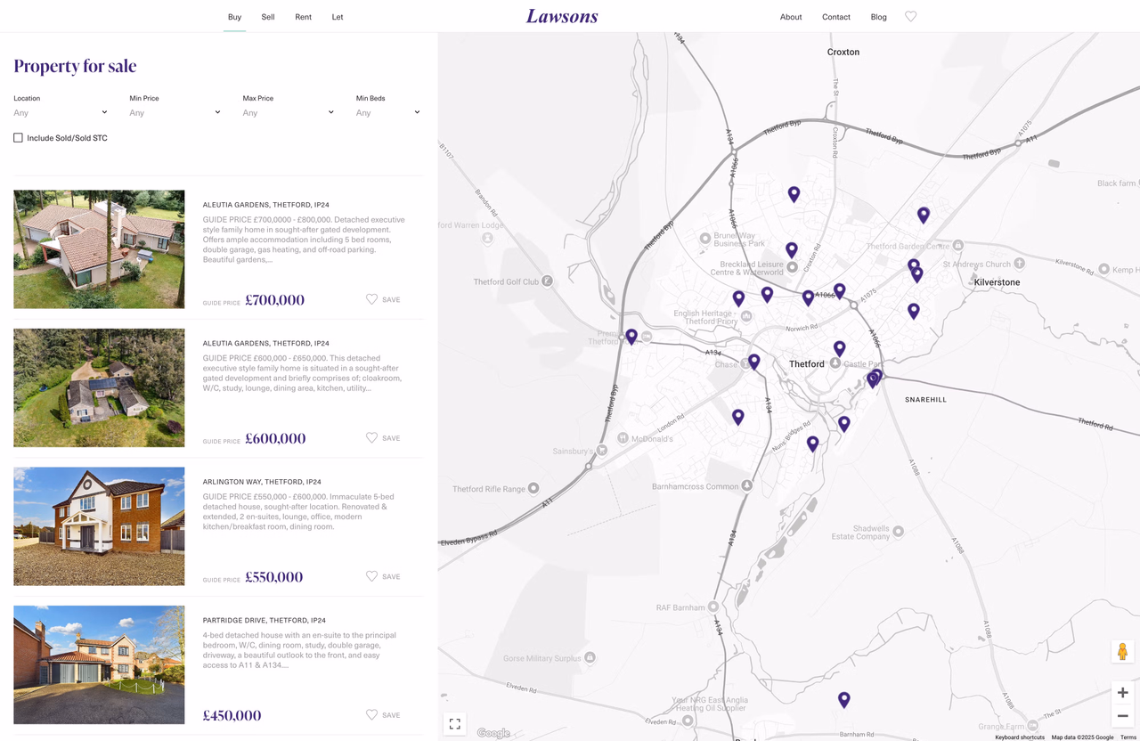 We were asked to design and develop a new website for Lawsons. The key requirement was to ensure the interface was slick, with clear call to actions. It was also important to ensure the website provided an intuitive property search facility, with functionality such as the ability to search via a map and save properties to a shortlist.